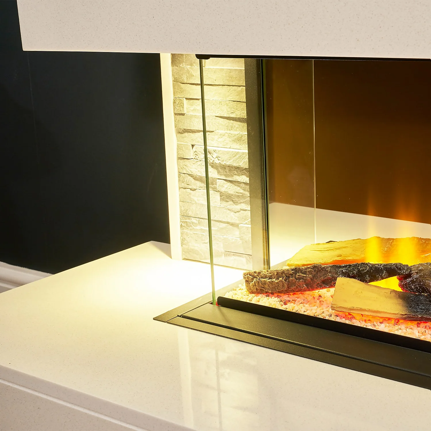 The Acantha Aspen marble fireplace suite is supplied with LED downlights which complements the electric fire which offers an atmospheric log fuel bed, 3D LED flame effect technology and seven colour settings. You also get a heat output of 1kW and 2kW which can be operated by the supplied remote control on a 7-day programmable timer. The Acantha Aspen is finished in our exquisite white marble with slate side panels and once installed we guarantee it will be the absolute focal point of your room.