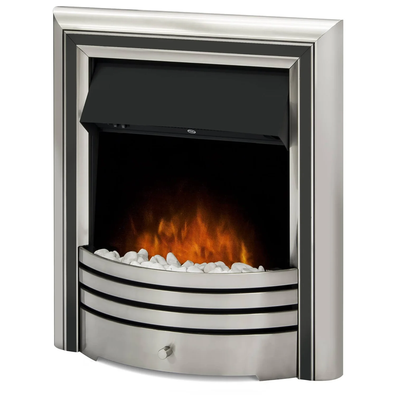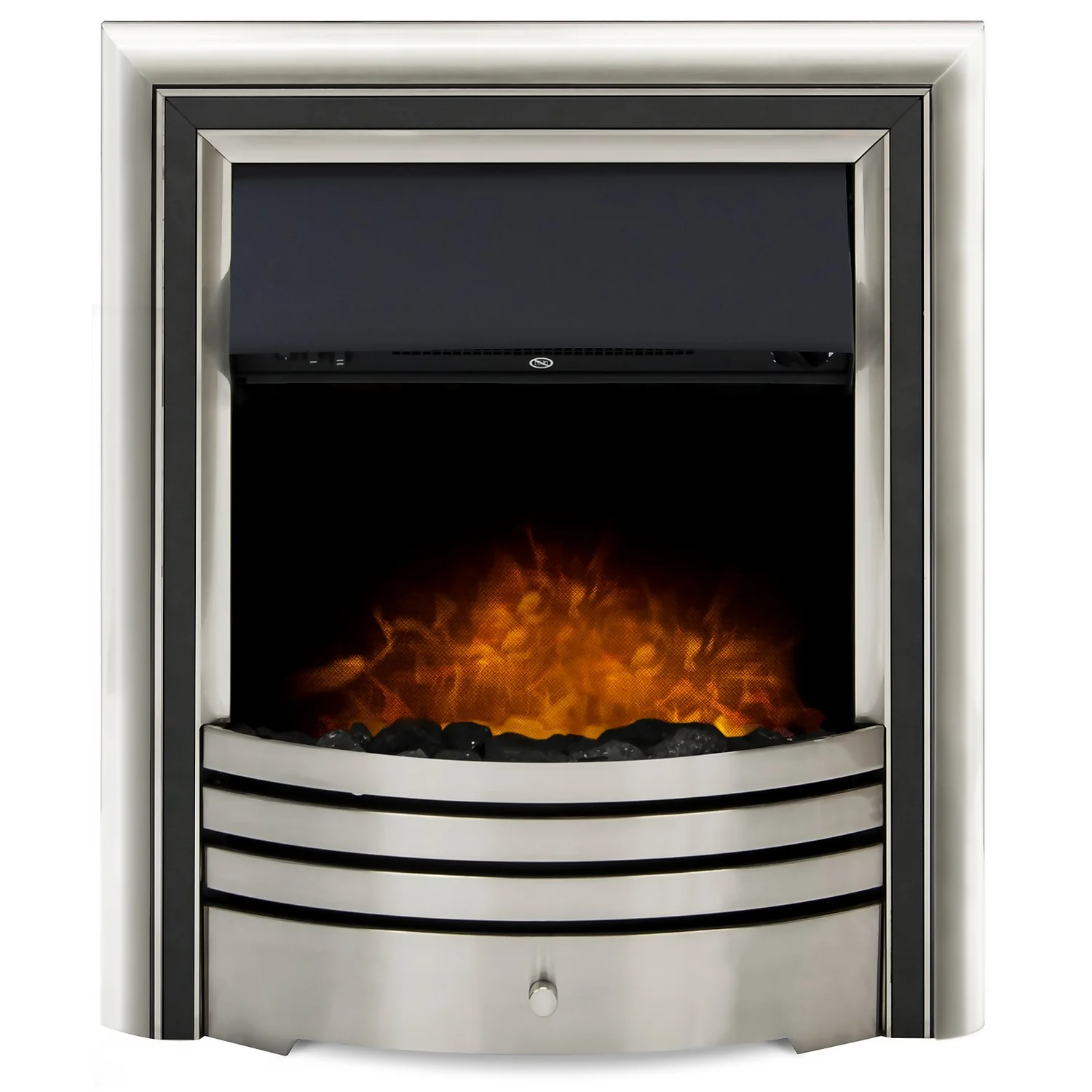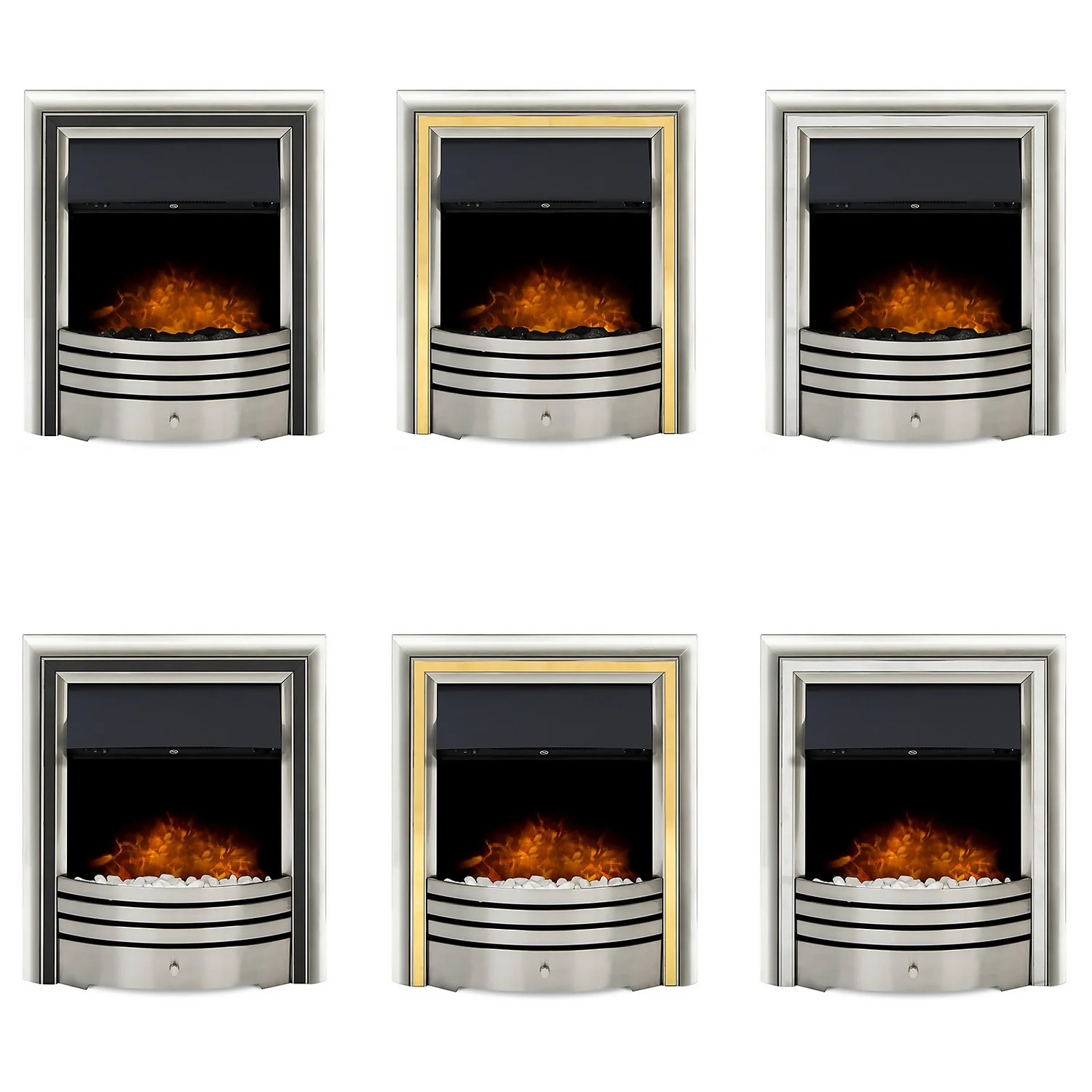 - Chrome effect electric fire with x3 interchangeable inlay trims