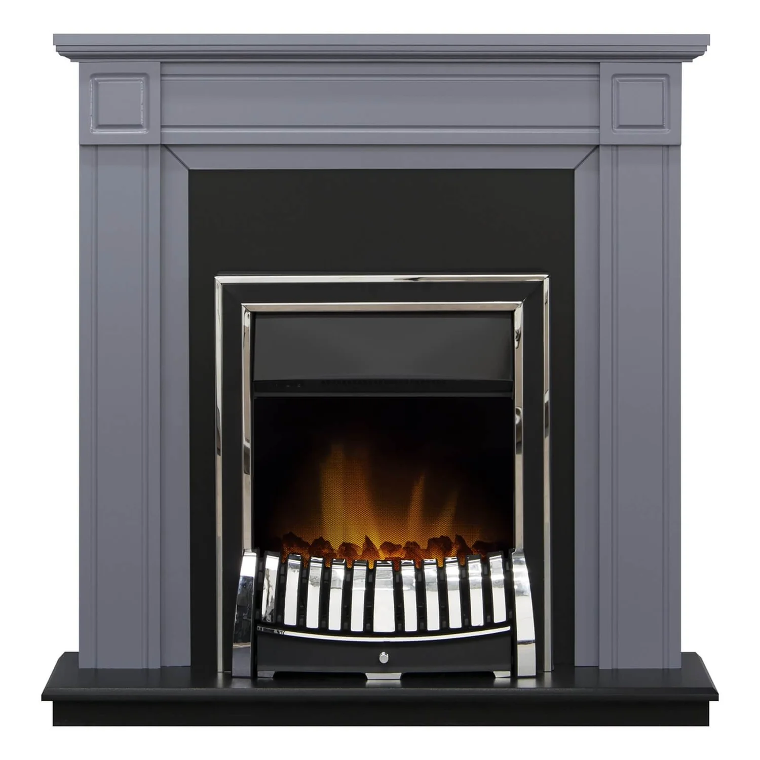 - Grey surround with black back panel & hearth