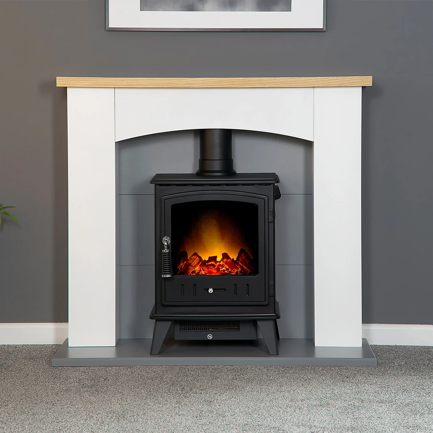 Αδάμ Adam Huxley In Pure White & Grey With Aviemore Electric Stove In Black, 39 Inch