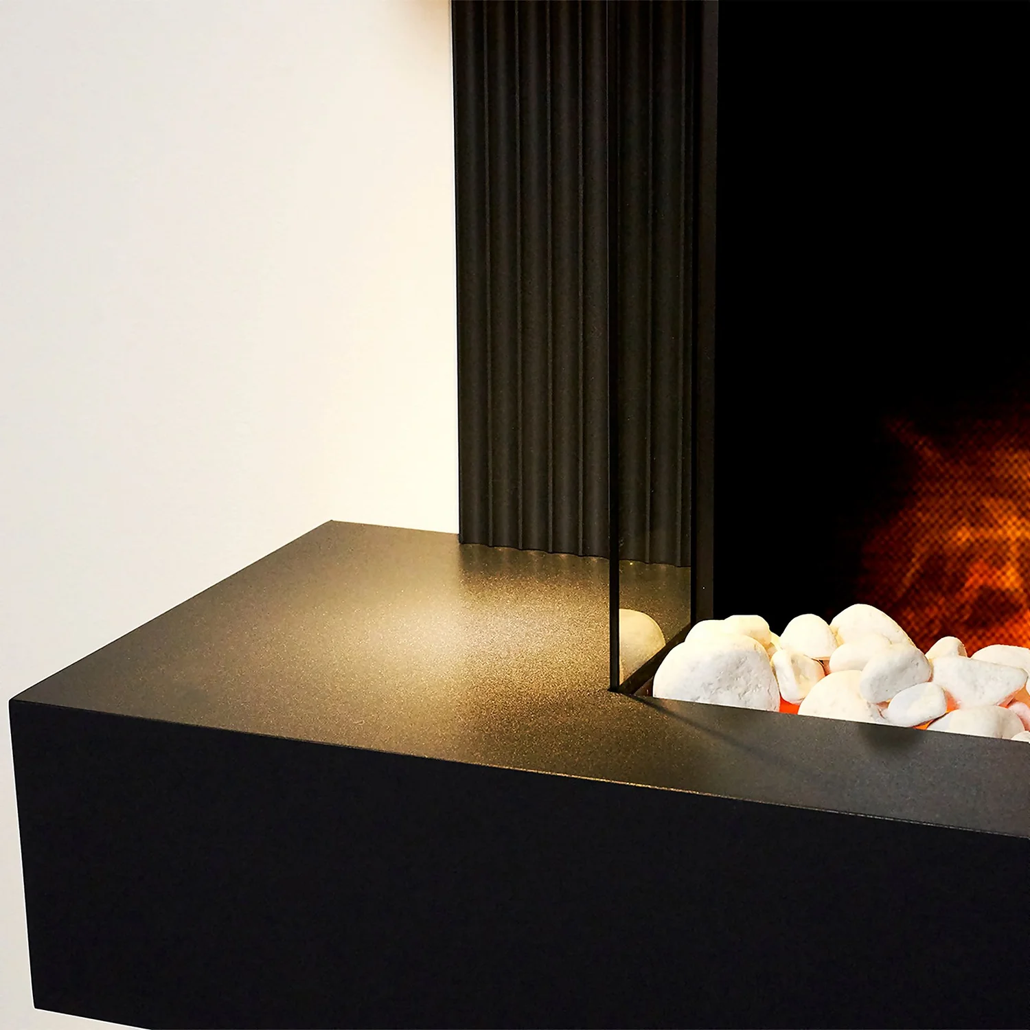 The Manola combines its downlights with an attractive back panel to create a beautiful focal point in any home. Without the requirement of a recess, this fire can be located flexibly to create the optimum impact. The Manola is also operated by the remote control which has the capabilities of a 7 day programmable timer, open door/window detection and adjustable thermostat.