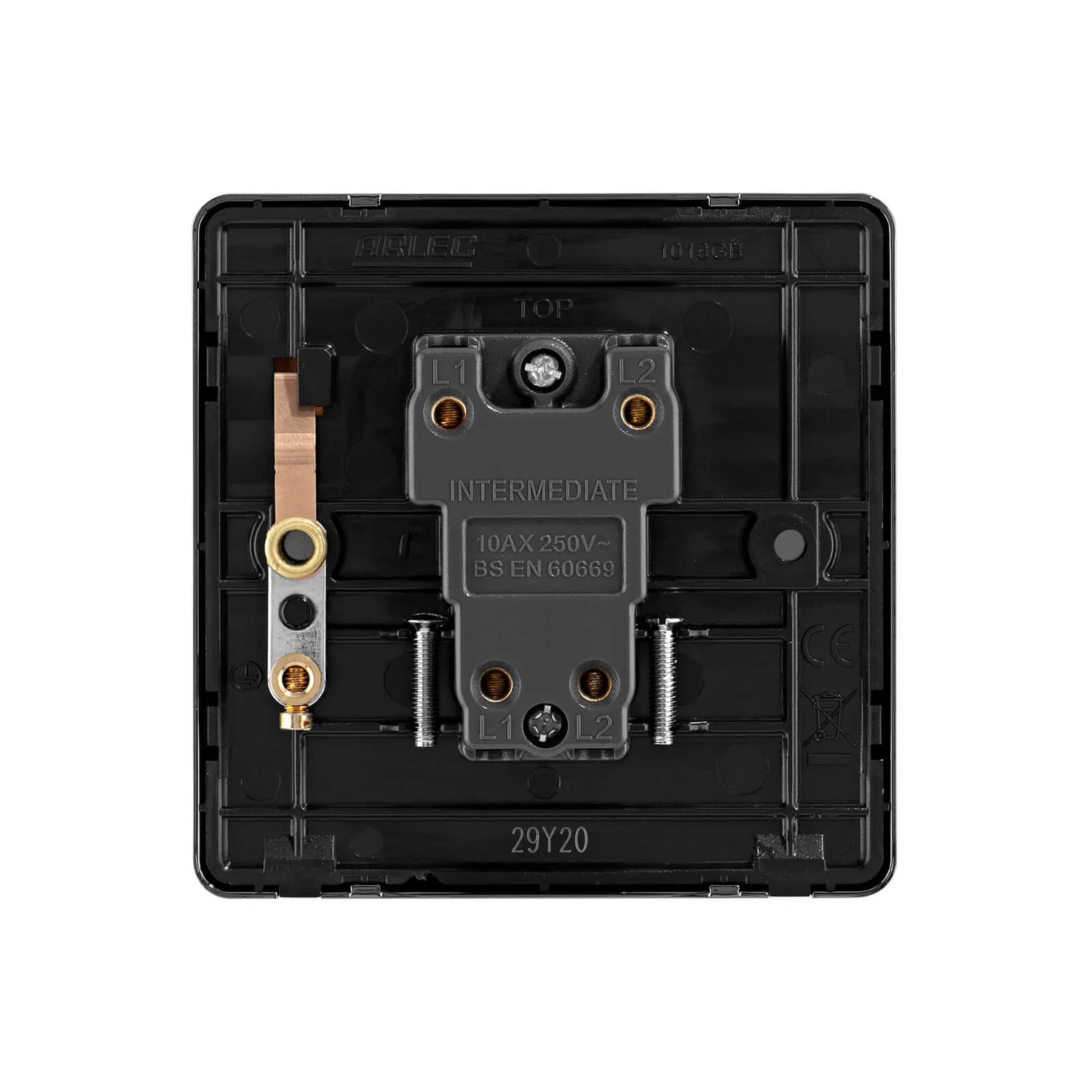 This product is a 10amp 1 gang 2 way intermediate switch. Complete the look with other Fusion electrical switches and sockets available in Black Nickel
