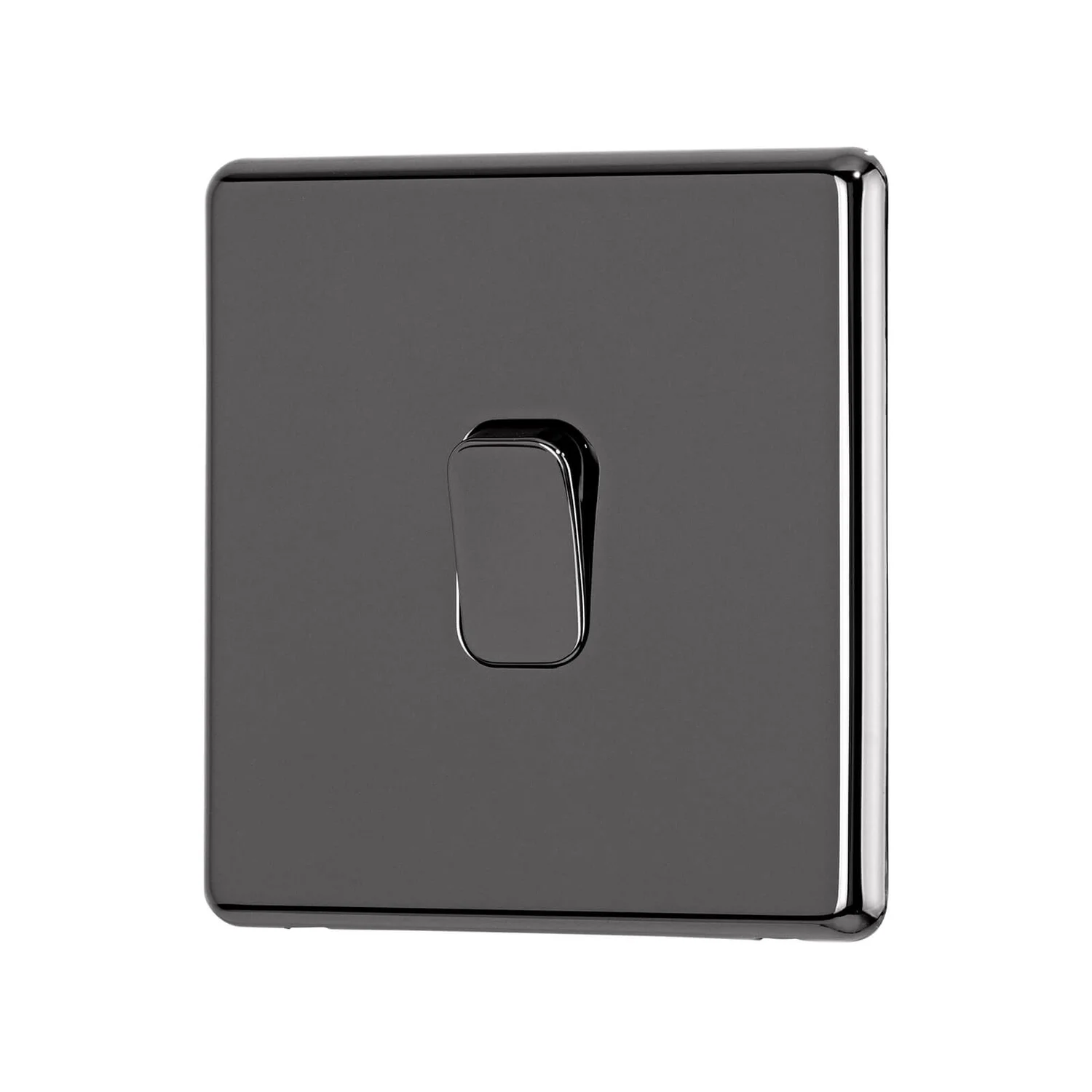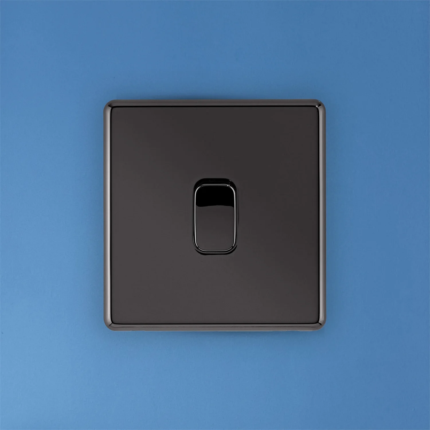 Be on trend with the Fusion Black Nickel light switch. The premium metal font plate has a minimalist and contemporary finish and is screwless and removable which is handy when you come to decorate. Terminals are colour coded with captive screws to aid installation