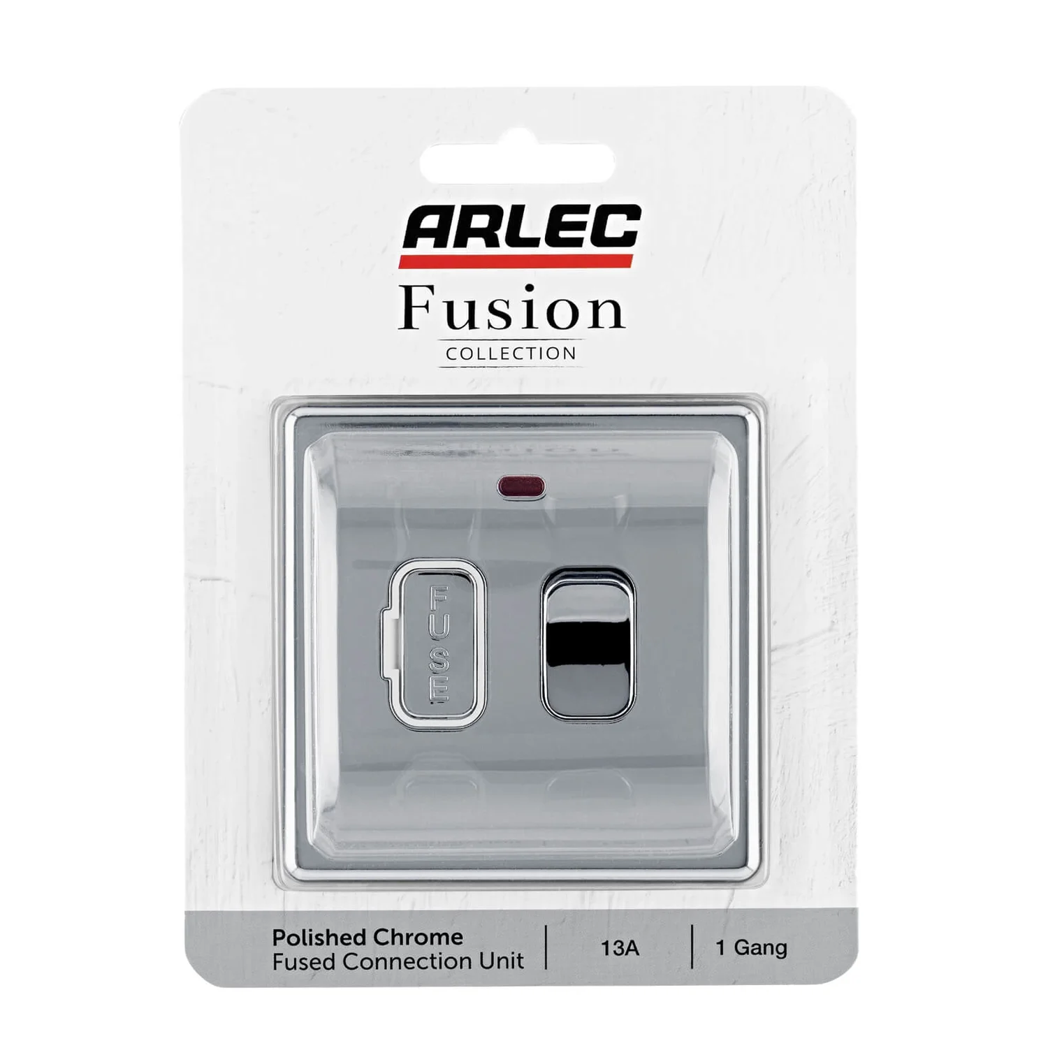 This product is a 13amp switched fused connection unit. Complete the look with other Fusion electrical switches and sockets available in Polished Chrome