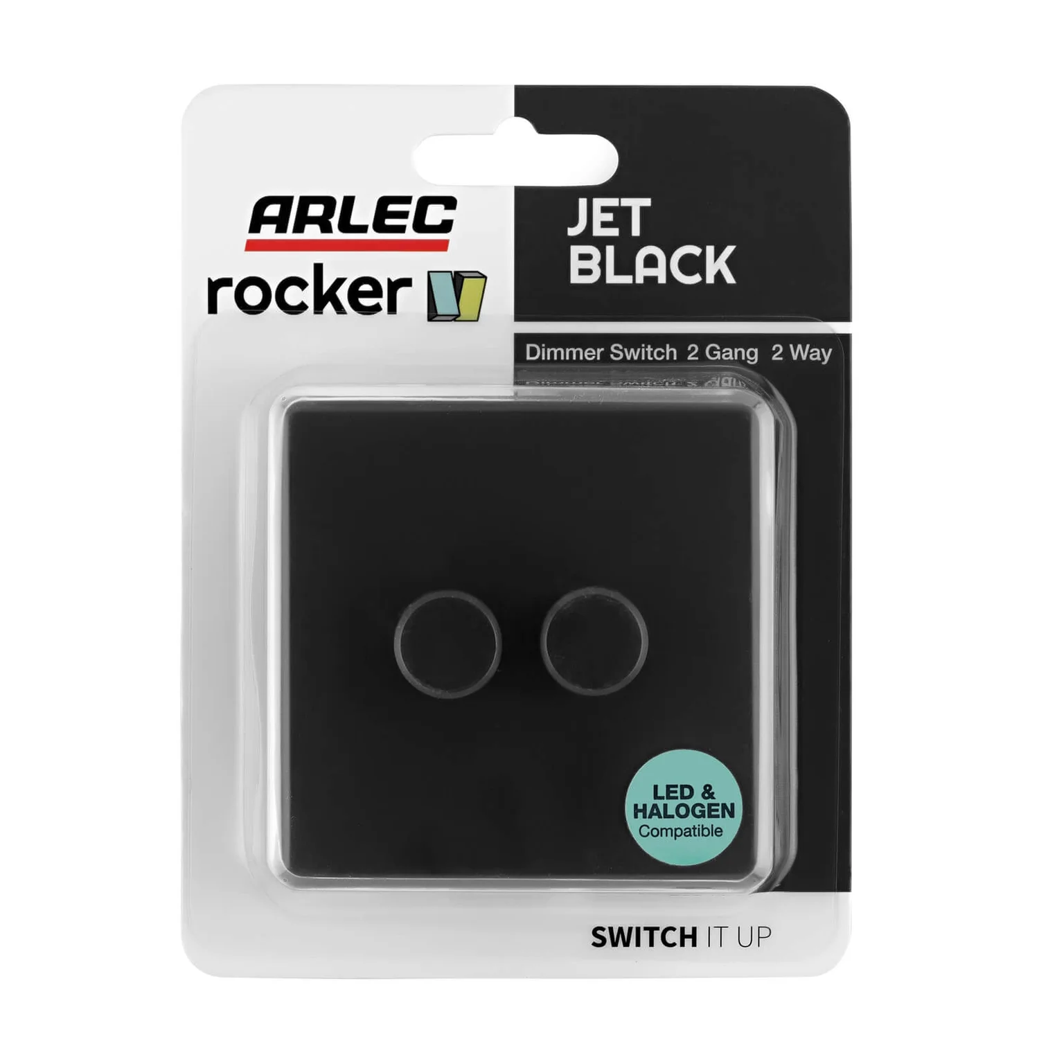 This product is a 10amp, 2 gang 2 way dimmer switch. Complete the look with other Rocker switches and sockets available in jet black