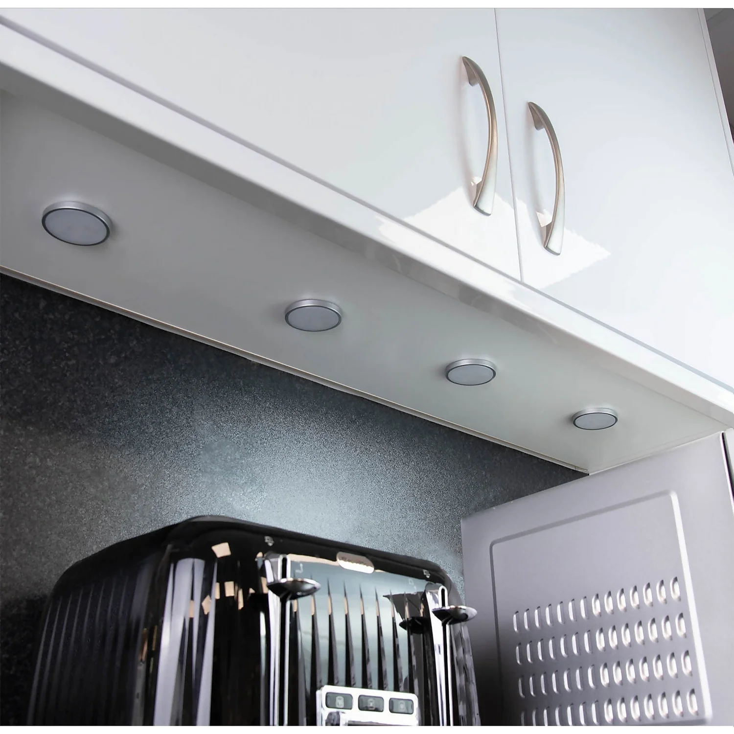 The Arlec LED Puck Light set comes complete with everything you need to install this unit by yourself, simply mount the light and plug into any 240V outlet with supplied adapter to light up your home effortlessly. Features an in-line switch, central connection hub and four 1.4w puck light module with interconnection wires.