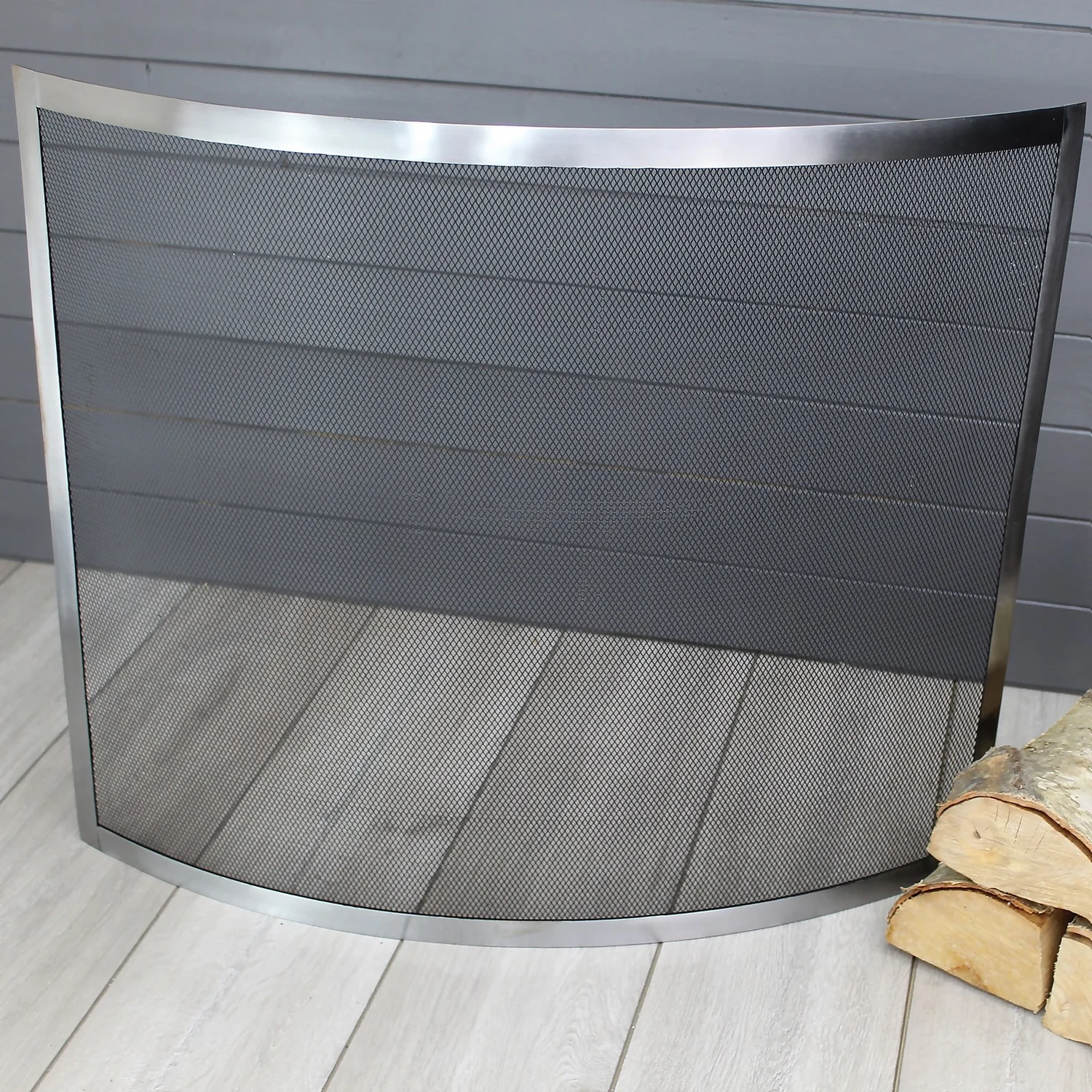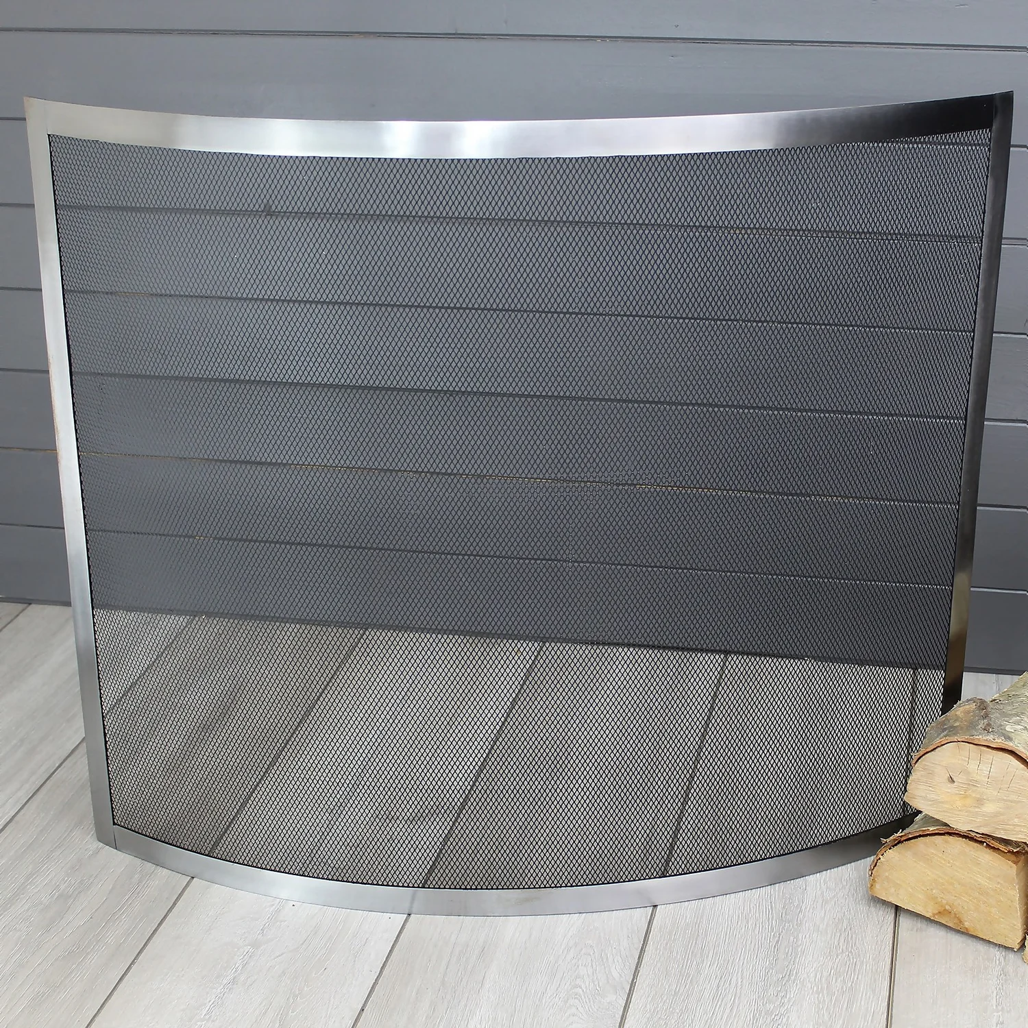 Classic in design, the Curved Pewter Effect Fire Screen is a welcome addition to any fireplace set-up. The screen is curved in shape to maximise cover and protection when in use, helping prevent spitting and sparks from leaving the area whilst the fire is burning. Finished with a large metal frame enclosing the mesh screen, the screen is made from durable iron materials that ensure the product keeps its shape when heated.