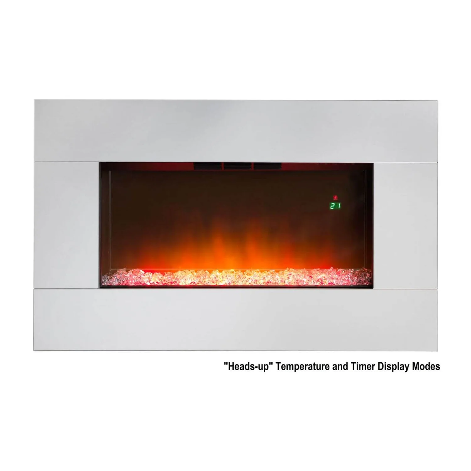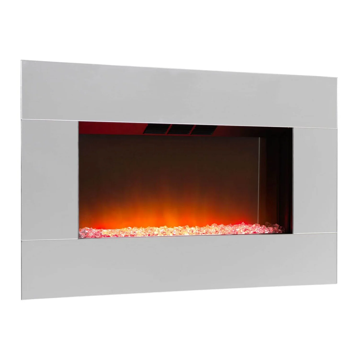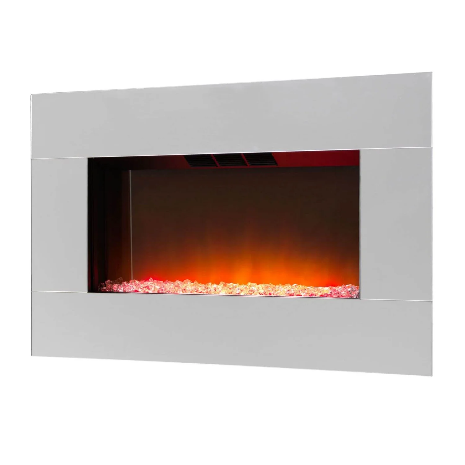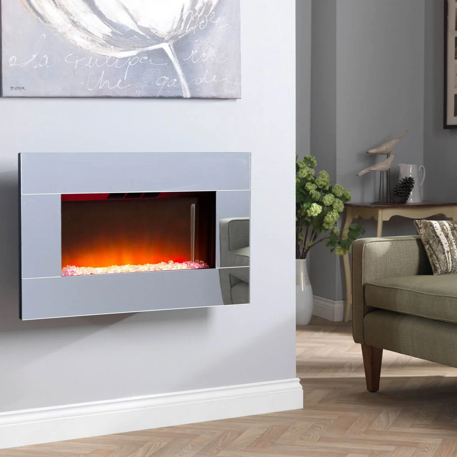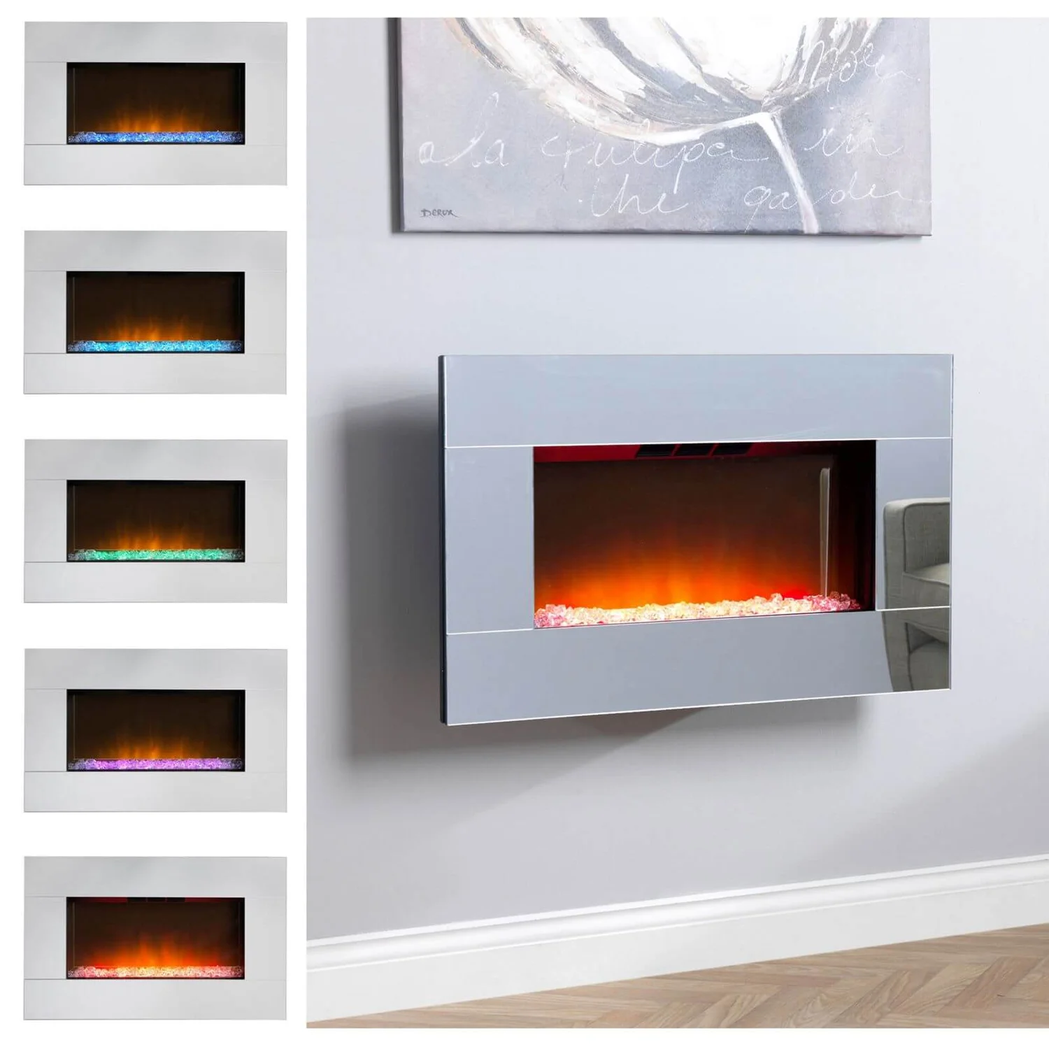 - Electric wall fire a stylish mirrored front fascia with ‘rough-cut’ diamond and variable colour fuel bed which can be set to a colour of your choice.