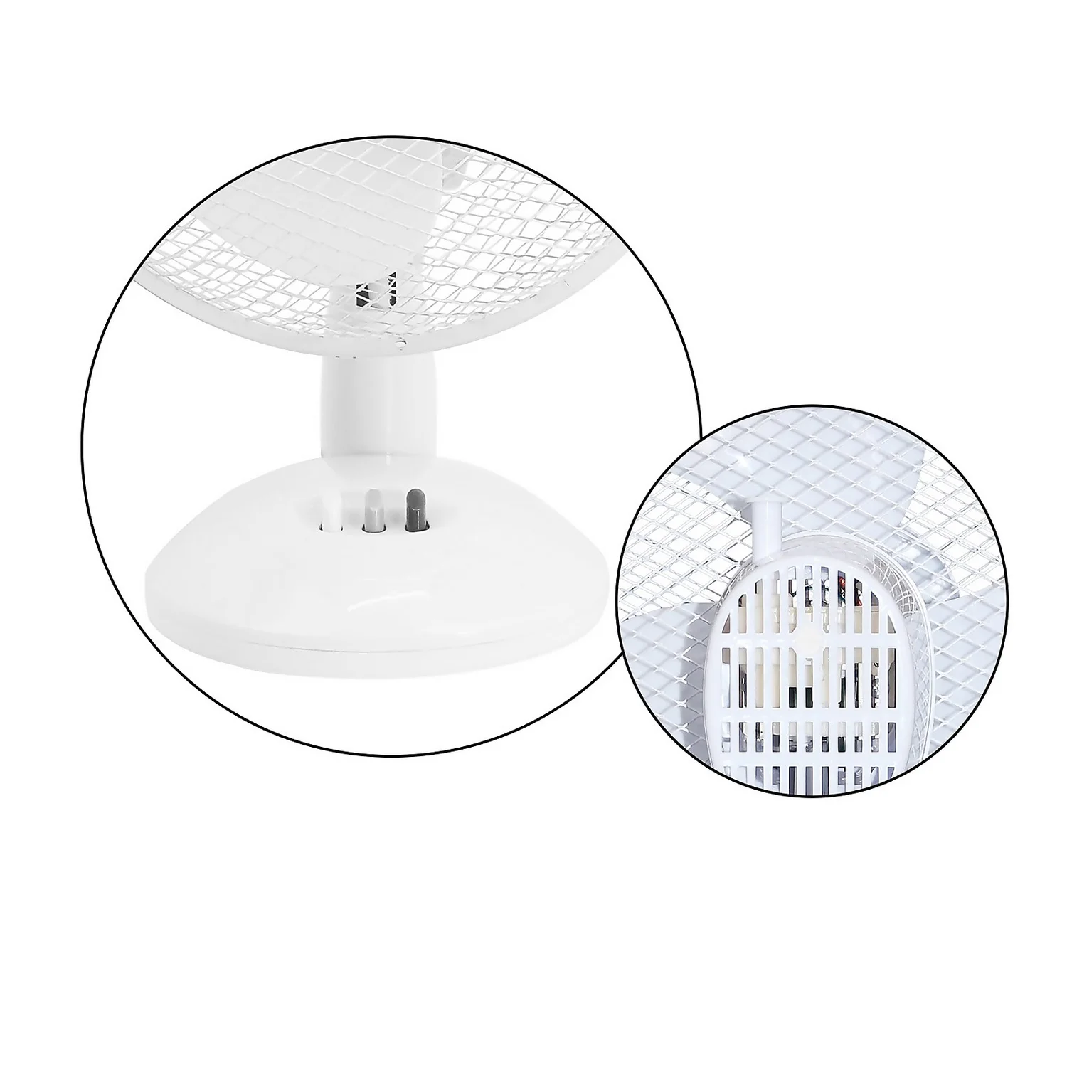 9 inch oscillating desk fan with 2 speed settings perfect for cooling smaller spaces.