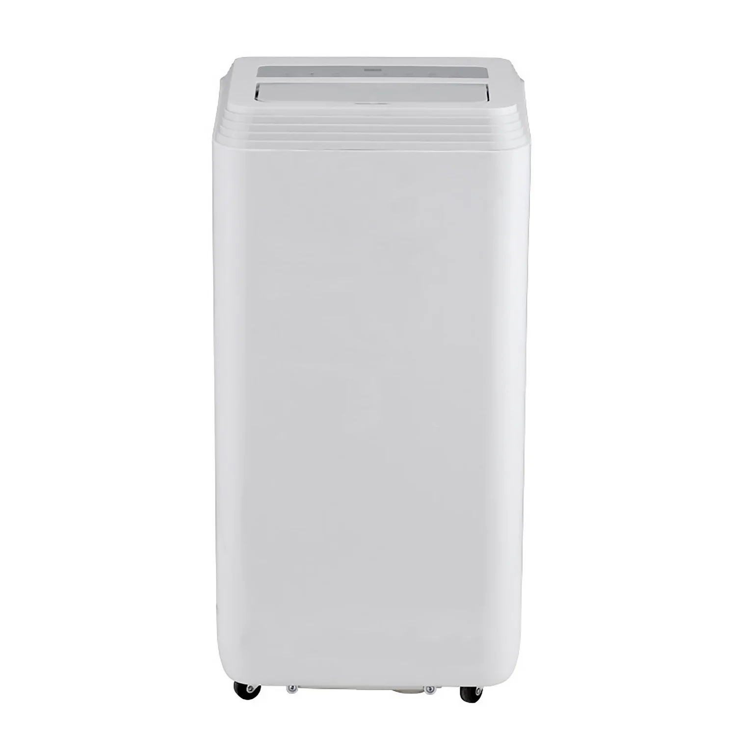 Homebase 12000BTU Portable 4-in-1 Air Conditioner, Auto, Dehumidifier, Cooling Fan with three Fan Speeds, Digital Display, Remote Control and 24 Hour Timer for use in homes and offices. There are three speed options to choose from (high, middle,low) as well as a thermostat that ranges from 15-31°C. There is a 24-hour timer that can be controlled through the touch control panel or the remote control. The compact and portable design features castors (wheels) for easy mobility. Exhaust Hose and water pipe are included with this product. This product is economical to run and has a Class A energy efficiency rating. This is due to its low power consumption and its use of R292 refrigerant, which is cheaper and more eco-friendly than other air conditioning gasses.