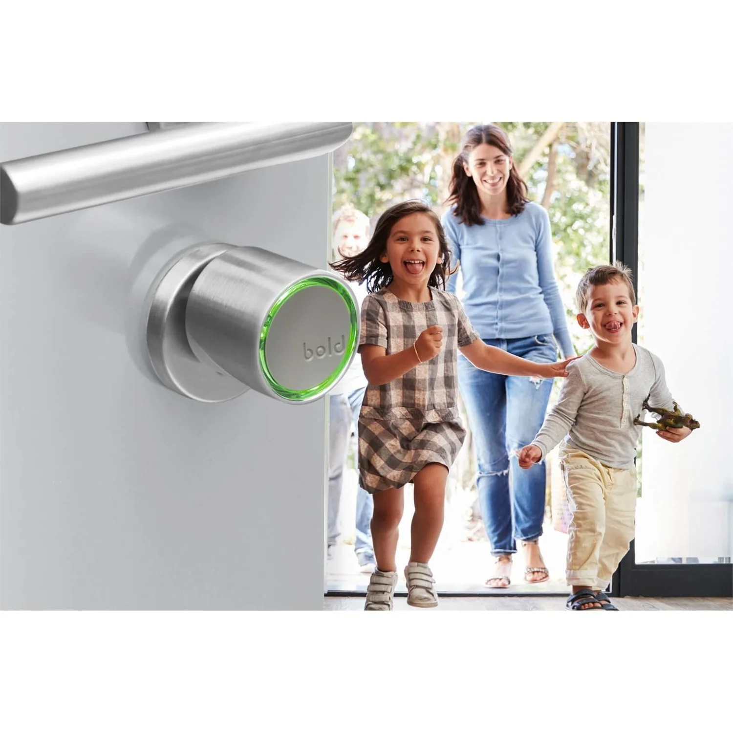 The Bold Smart Lock allows keyless entry & exit in to your home, giving convenience to your whole family. The Bold Smart Lock also allows you to control who can have access to your house. The door can always be unlocked from the inside, which means you can always leave safely during emergencies. This smart lock is easy to install & operate via the Bold app.