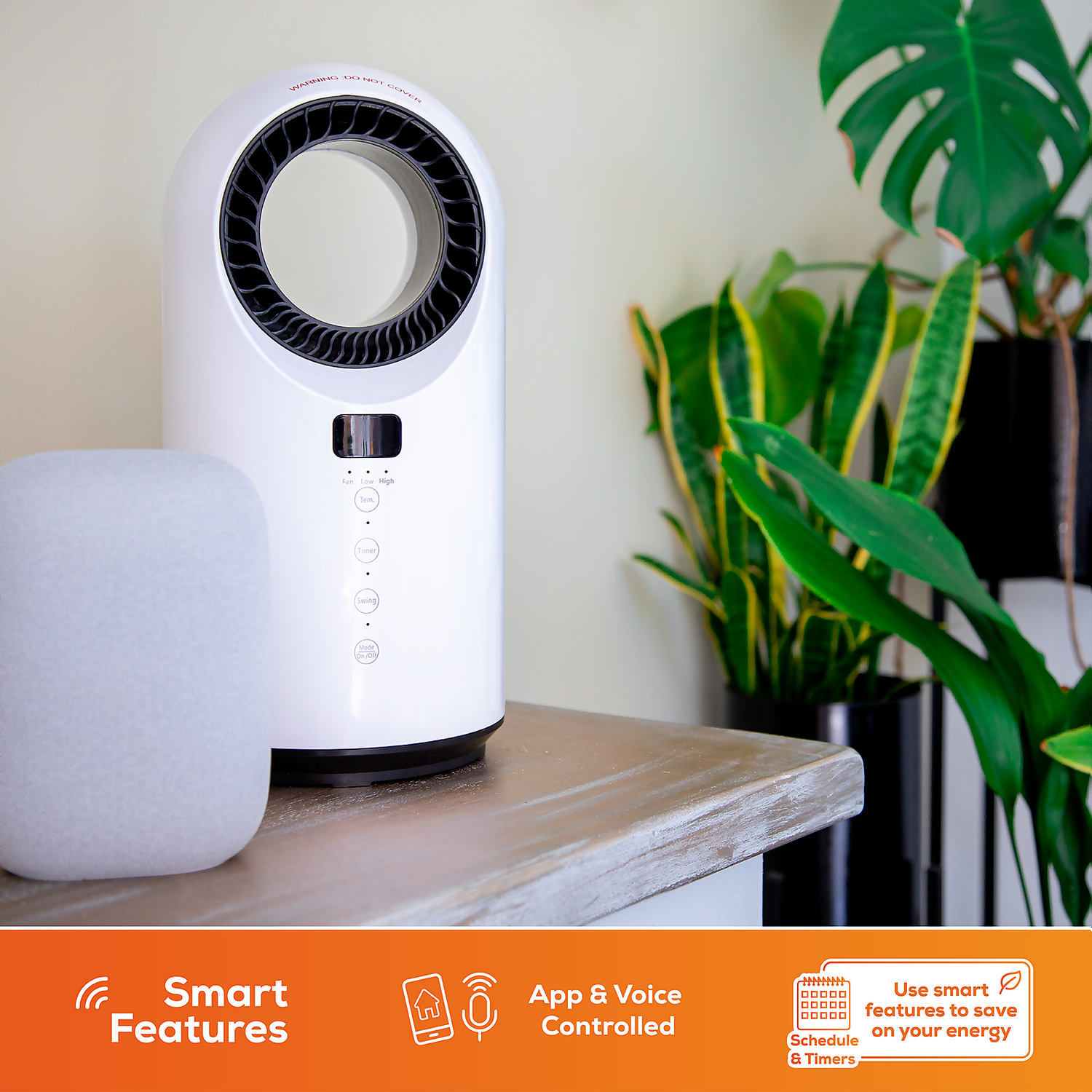 TCP Smart Wi-Fi Portable Bladeless Heating and Cooling fan. Such a wonderful design providing the best heating and cooling solution. The powerful 1500w ceramic heater is lightweight and portable and can be moved from room to room. Available in Gloss White and Matt Black. The Smart features allow for full voice via Alexa and Google. “Alexa set the room to 20 degrees, OK Google turn off the fanâ€. Direct control via the TCP Smart App and set schedules and times remotely. Save money through efficiently heating the room and not the home.